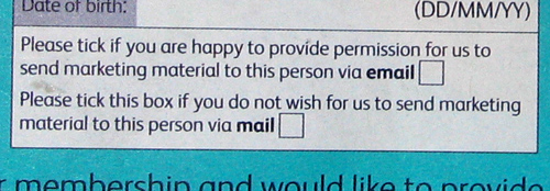 Much as I’d like to suggest the organisation investigate the Plain English Campaign, I fear that the real reason for the bad phrasing is to confuse people into unintentionally giving permission for their friends and family to be included on junk mail lists.