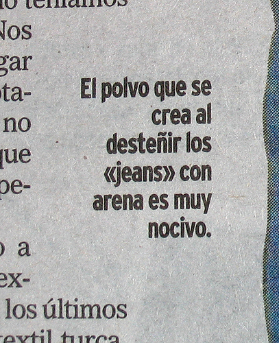 “The dust produced when jeans are faded using sand is extremely noxious.”