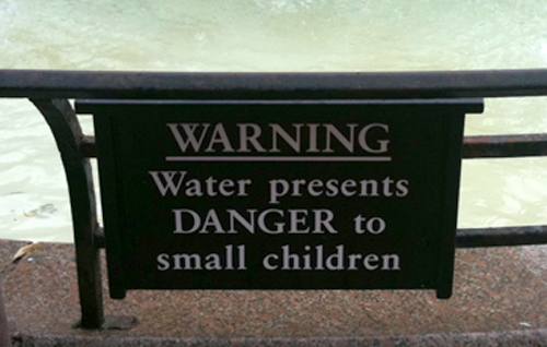 The verb ‘discharge’ would surely only apply to liquids or gases – effluent, not ‘litter’ – which doesn’t make much sense for a sign on a small, self-contained pool around an urban fountain. Where’s the Campaign for Plain English when you need them? (And, yes, I know I’ve mixed singulars and plurals there, but I don’t think it makes the sentence difficult to understand.)