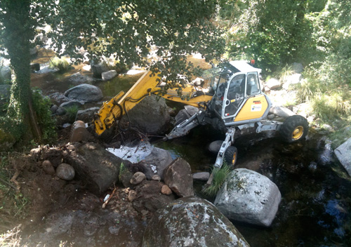 I came across this monstrosity sitting in the local river this morning, and the word bulldozer wandered through my mind looking for something to connect with.
