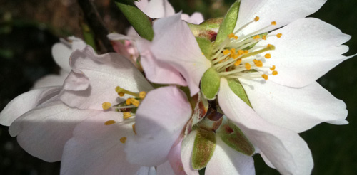 The flowers in question are almond blossoms, which come very early on, in the first mild days of the year, but which don’t usually last very often because the snow or the frost is almost certain to return.