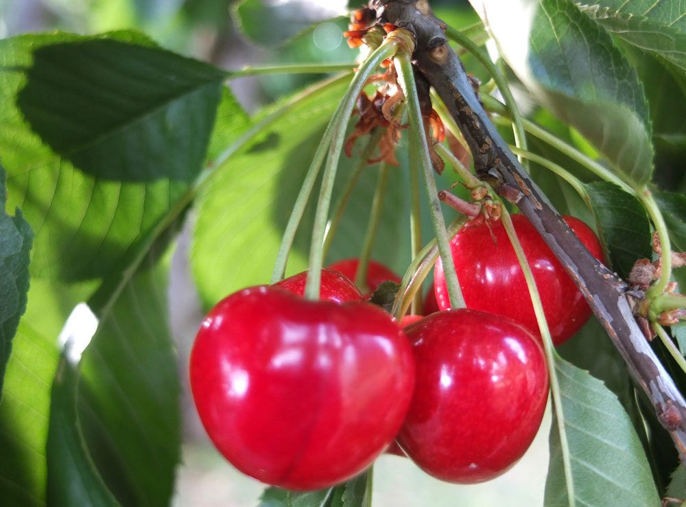 Of course, like everything else, modern seasons aren’t what they used to be. The cherries – one of the most plentiful fruits in this area – are usually ready at the end of May. This year, the few that there are on our trees are still not fully ripe. Even so, they are beautifully sassy and bright, so they’ll do to illustrate the moment.