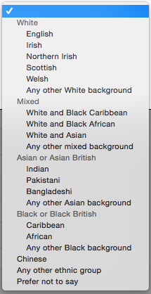 This seemed relevant when I was filling in a survey online last week and was asked about my ethnic background. The options were: