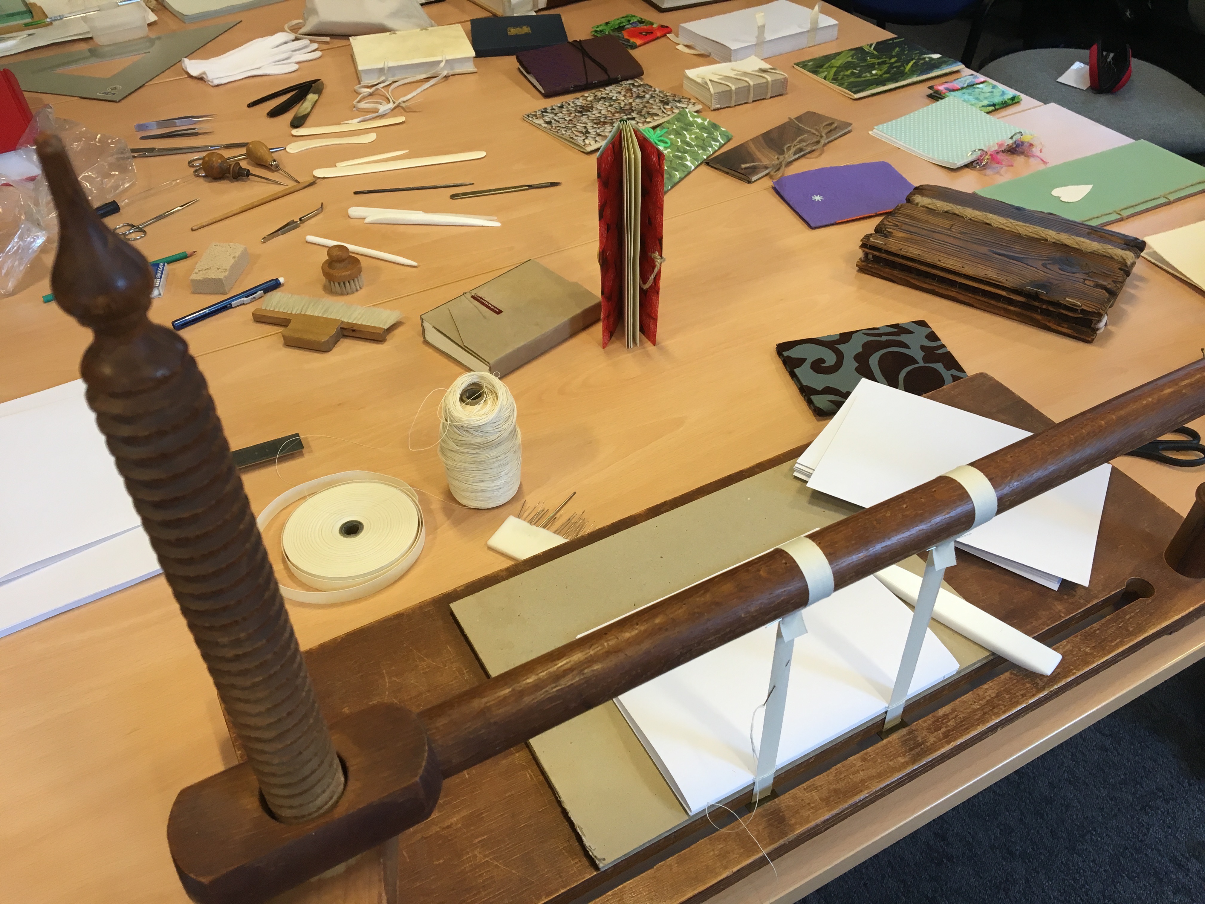 I went to a fascinating “show and tell” at the local archive office last week, where the archivist talked about bookbinding and conservation and showed us the tools of her trade.