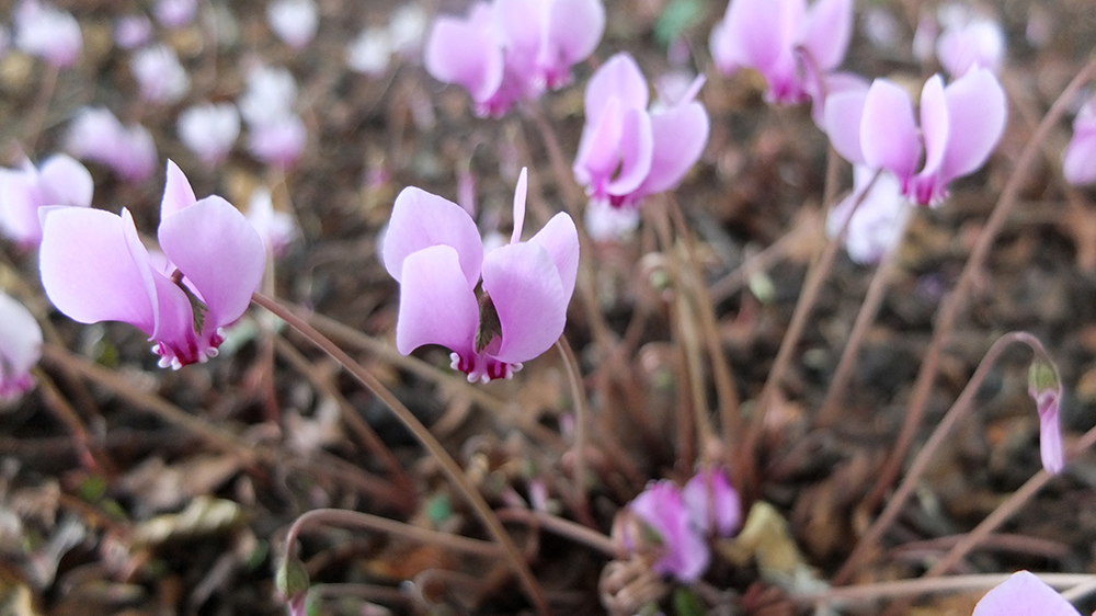 They go dormant in summer and then return in the early autumn, which is presumably why I found a patch of pale pink blossoms this morning sprawling wild under the trees in the little walled garden that abuts the churchyard.