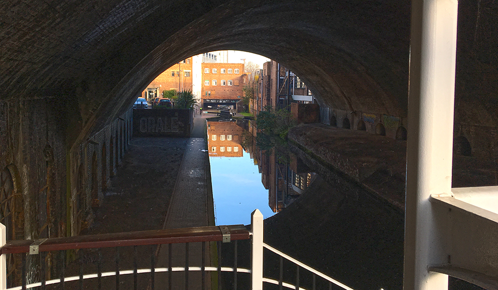 Surprisingly, near the centre of Birmingham, I found a canal – I think it’s actually a stretch of the same one – that had time to sit perfectly still and reflect. It showed its surroundings quite accurately: