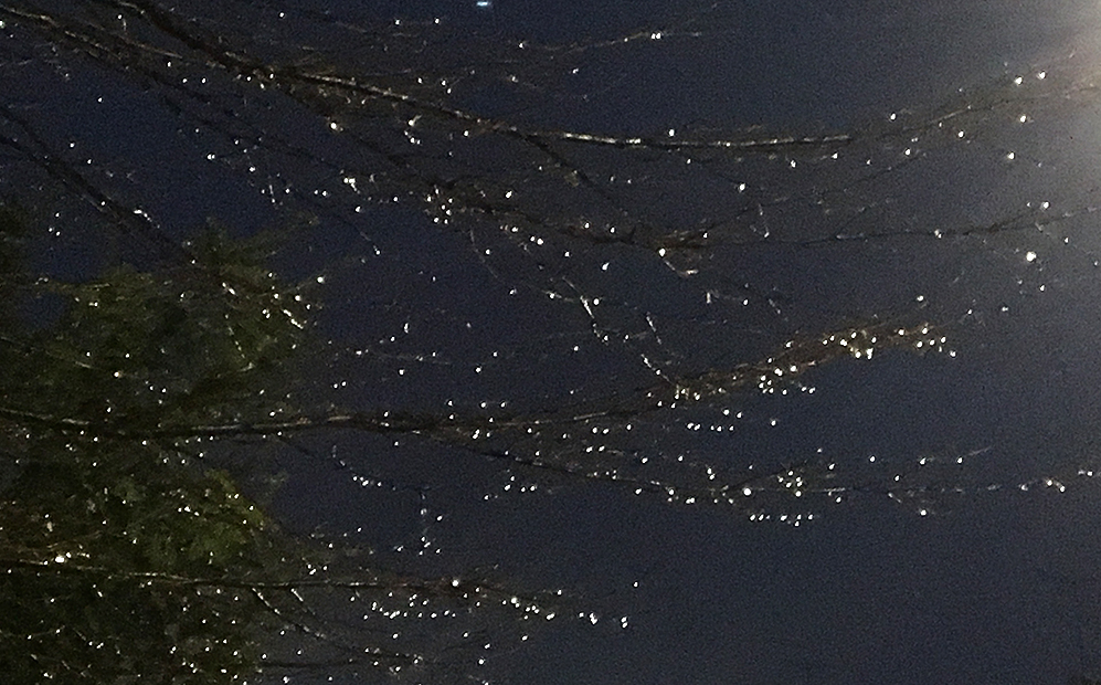 And one final picture of branches strung with fairy lights by the rain: