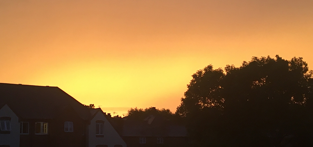 I don’t seem to have as many photographs of sunsets as I do of sunrises, but have found this one from some time last summer. Since it was taken locally, it’s rather weaker sunshine than the top photo, which was taken in Spain.