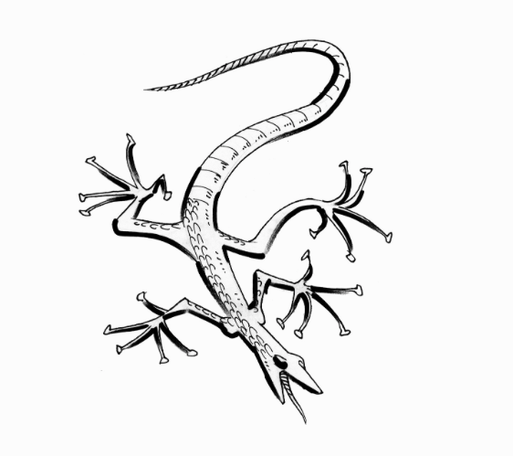 of a dragon curves the stillness of concentration.A later glimpse suggests a dinosaur in miniature: