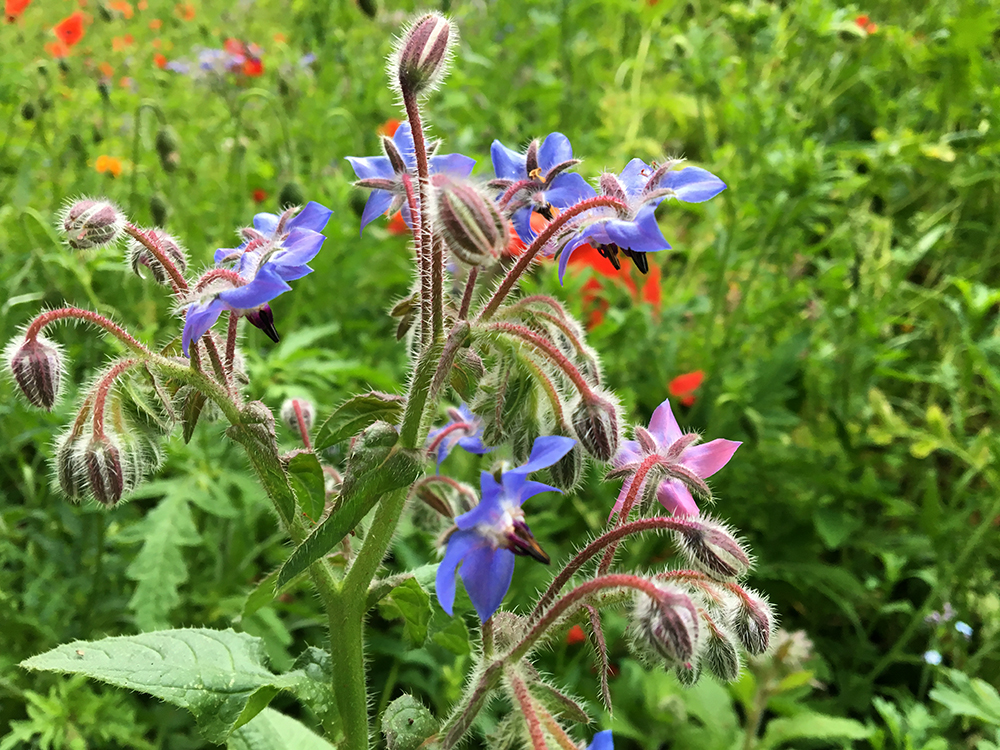 However, the fact that these bells must have swung up to the highest point of their trajectory does make them easier to photograph. Flowers that grow low and hang downwards, like the borage in the photo below are far more difficult, particularly as it’s getting to the stage – or I’m getting to the age – when I no longer want to lie flat on the ground to take photos.