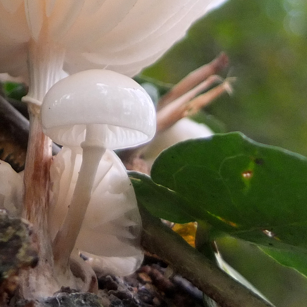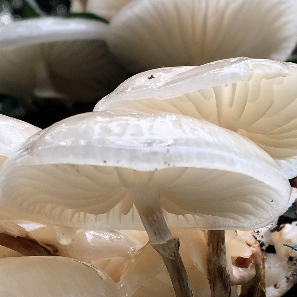 The light wasn’t particularly good for taking photographs, but the open fungi gills were translucent and, looked at from beneath, the things seemed almost luminescent.