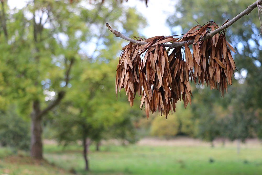 Hornbeam and sycamore send their seeds yellowcoptering through the air.