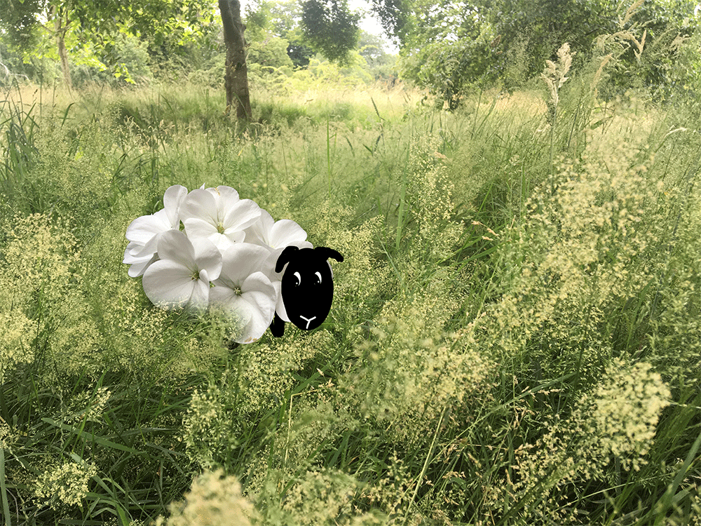 No matter. I realised last year that the white geranium clouds in my yard lend themselves to things other colours wouldn’t. So I will close by re-posting this gif from last summer.