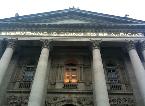 Apparently next year they are going to start to allow photography, but at the moment the only works you can take pictures of are a few sculptures at the entrance and the works displayed outside. Which includes the 1999 work by Martin Creed, currently displayed on the building façade above the Millbank entrance: