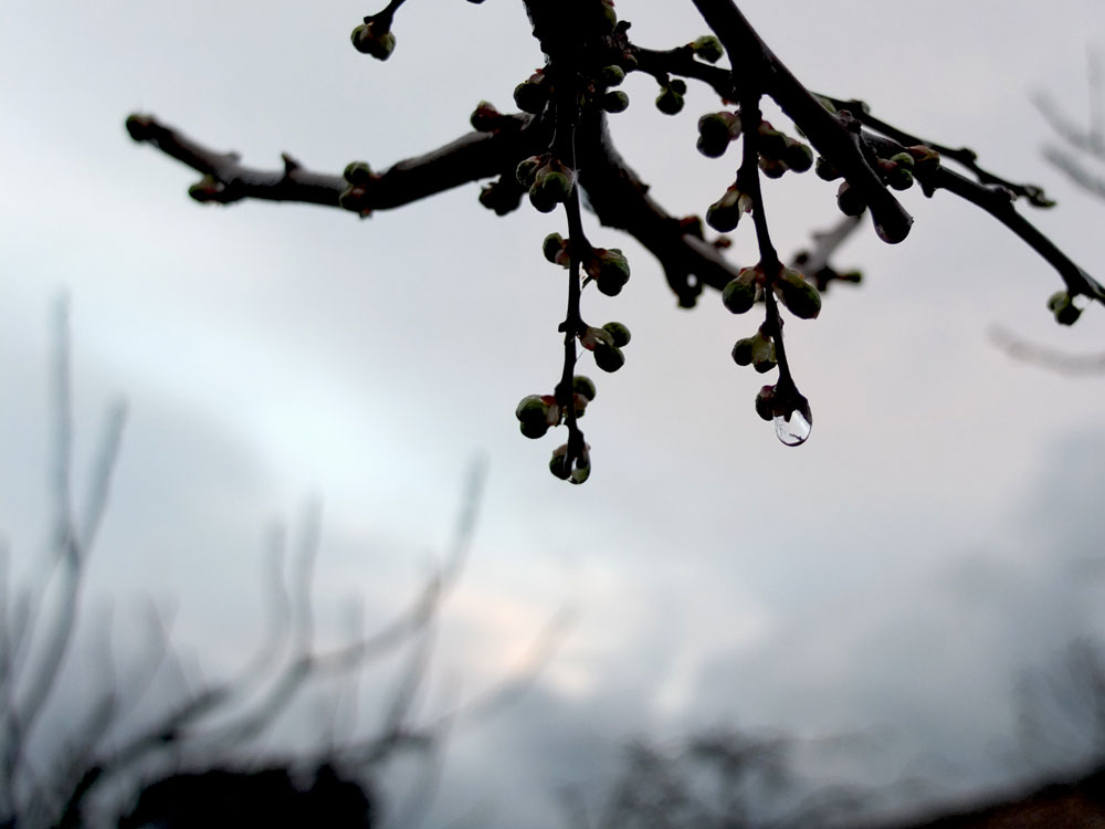 I love the way the raindrops and buds work together, but I need to practise more to get the pictures I really want. A little sunshine might help, too.