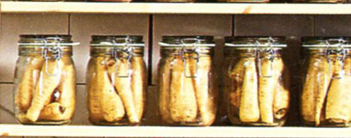 Bottled parsnips  on the IKEA catalogue cover They say fine words butter no parsnips, but, fine words or not, IKEA apparently bottle them. And turnips, too, judging from the pile on the table. (I assume the mother has just dashed out to get another hundred pounds worth or so of jars. I hope there’s an adult in the house to keep an eye on that child – after all, a trip to IKEA takes a minimum of half a day even if you only go for one thing.)