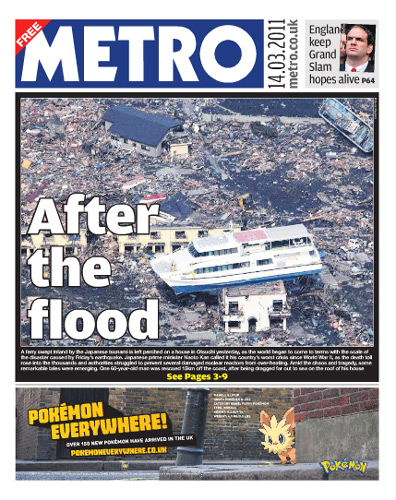 There’s a huge, attention-grabbing photo of devastation caused by the earthquake in Japan, and right below it an advert for Pokémon Everywhere which claims that “over 150 new pokémon have arrived in the UK”.